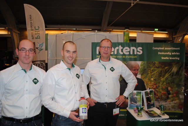 Van links naar rechts: Rik Lenssen, Jan Janssen en Henk Ritteer van Mertens, staan met de Limonica. Limonica bied totaal oplossing voor trips, spint en vooral witte vlieg en het is ook reeds werkzaam bij lage temperaturen.