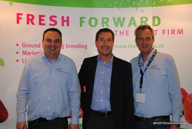 Wout van Es, Antoine Heijkoop en Ivo Janssen van Fruit World Breda. 2014 is goed afgesloten. De verwachting voor 2015 is dat het iets gaat uitbreiden in het glasareaal en dat er een toenemende groei is in consumptie van zachtfruit.