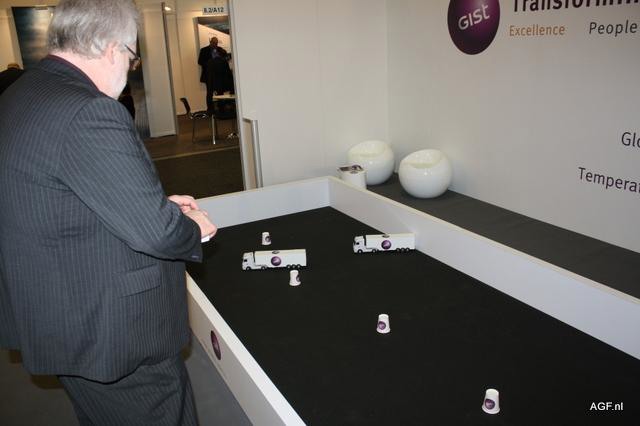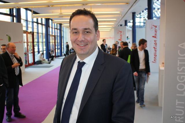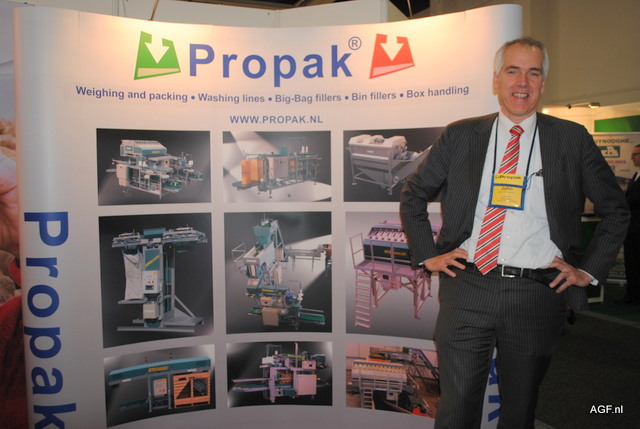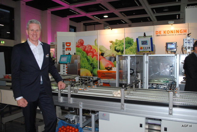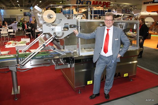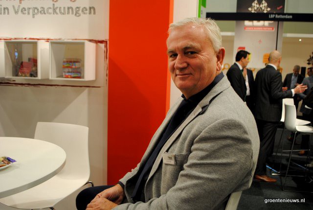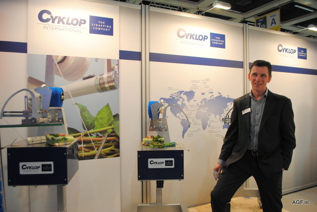 Peter de Boer van Cyklop International. Zij staan bekend om het omsnoeren en verpakken van pallets. Ook met bijvoorbeeld deze lijn van elastiek binden om producten de bundelen. Dit willen ze meer gaan promoten in de groenten en fruit sector.