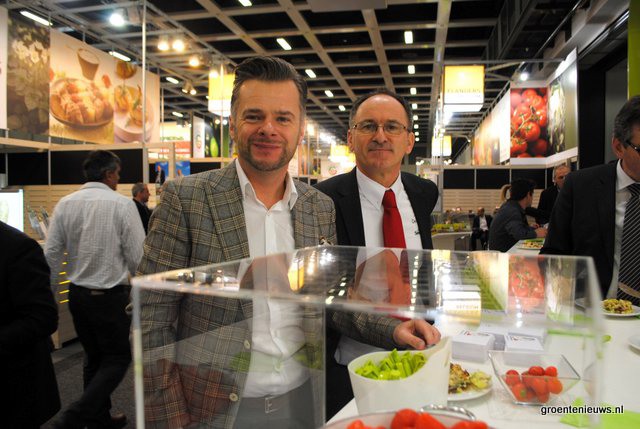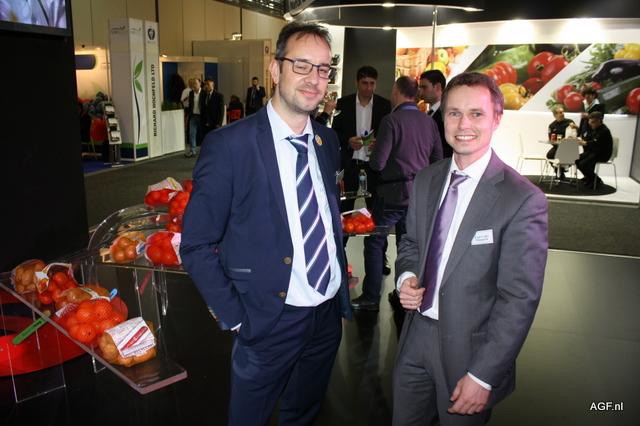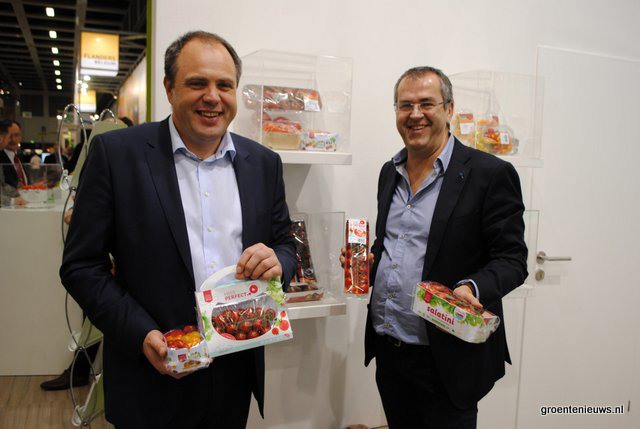 Paul van de Mierop en Koen Lauwerysen van Den Berk BVBA presenteren de nieuwe lijn tomaten onder het merk Den Berk Delice