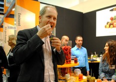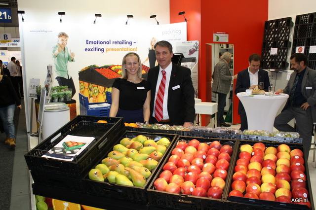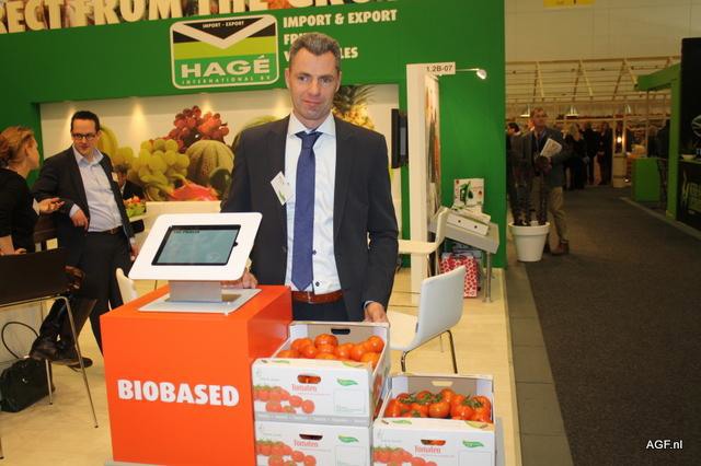 Eric van Heugten van Multitray. Hij trok de aandacht door te presenteren wat de Fruitsaver voor bescherming kan bieden aan fruit. Ook wilde hij de nadruk leggen op de 500-gram schalen die hij aanbied.