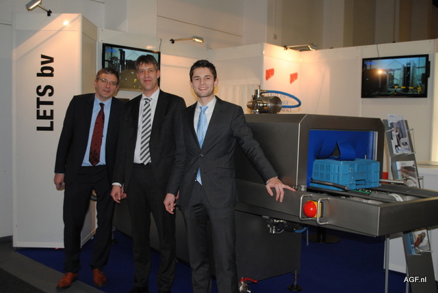 Johan Leffers, Guustaaf Hoekstra, Herman van Losenoord van Lets. Deze impact wasser combineert wassen op hoge druk met gewoon wassen voor groenten en aardappelen, maar ook aardbeien.