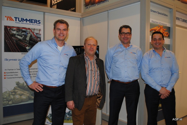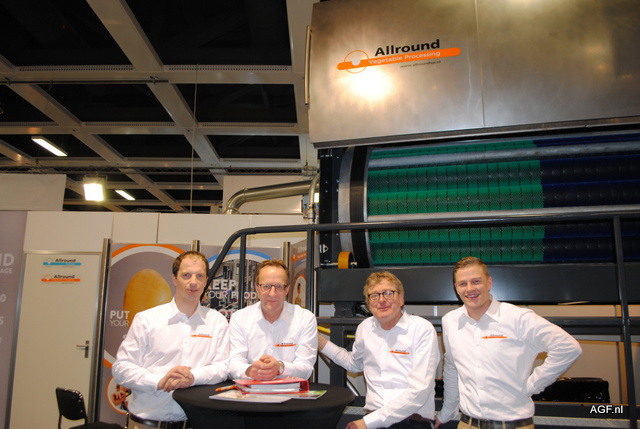 De mannen van Allround Vegetable Processing: Andis, Hans, Huib en Tim. Zij hadden dit jaar een hele nieuwe stand om de nieuwe huisstijl te promoten.