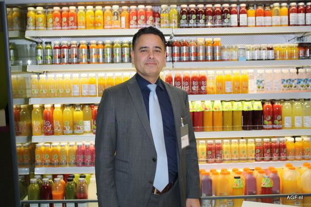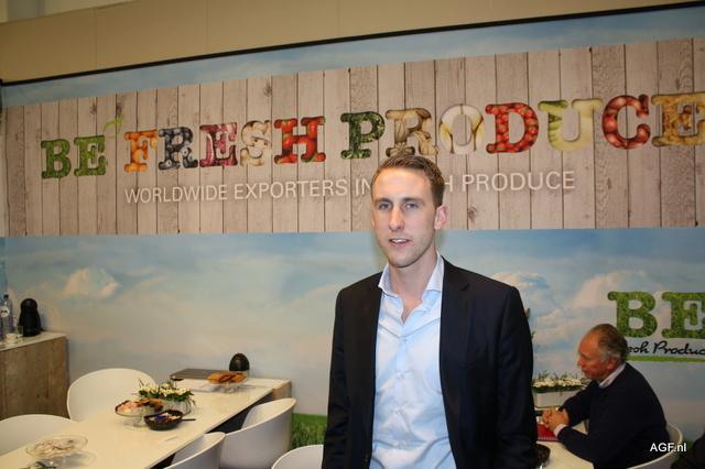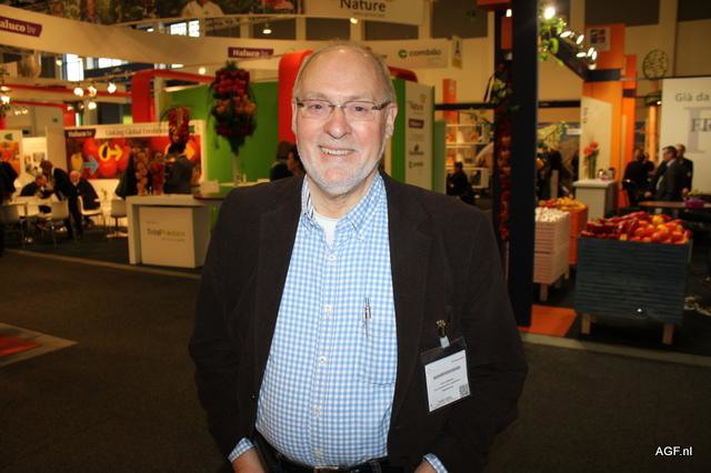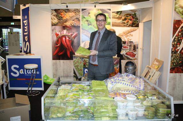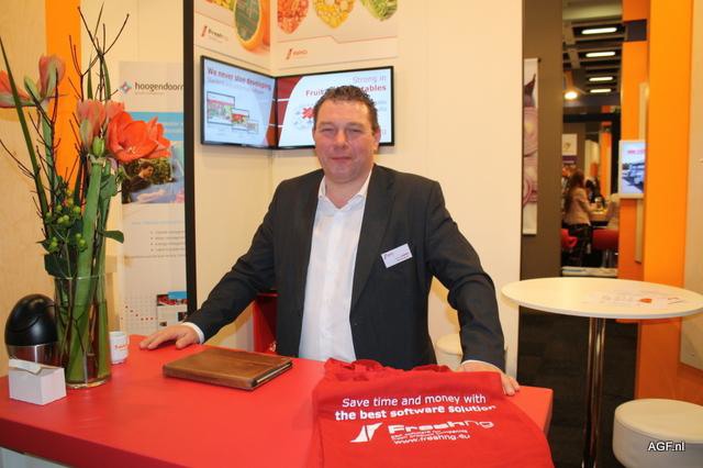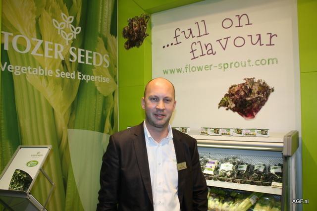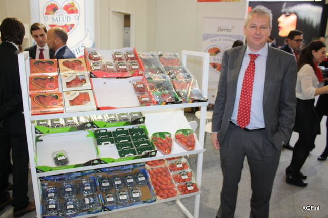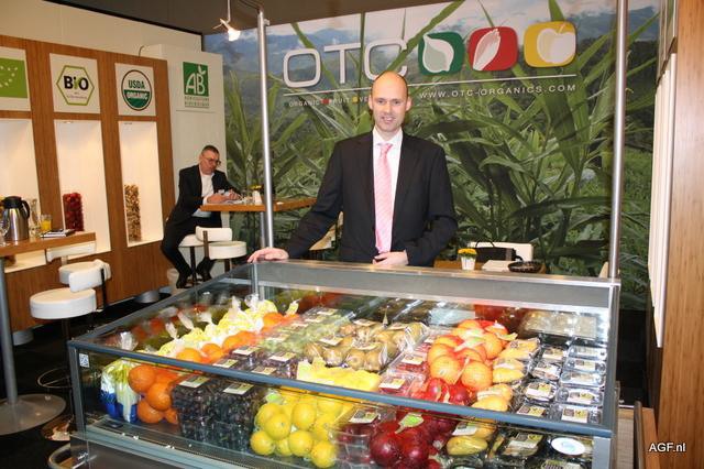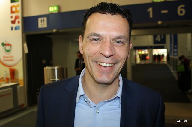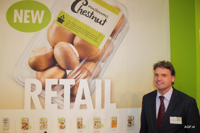 Marc van der Zandt van FME. De paddenstoelenleverancier introduceerde na de nieuwe Nederlandse verpakkingslijn op de beurs ook de nieuwe internationale verpakking