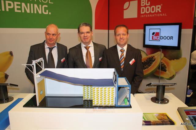 Henk Westera, Ronald van der Tuin en Thomas Kalteren van VDH Products met deze nieuwe fruitbewaarder en nieuwe stappenregelaar. Samen is dit een totaalsysteem voor bewaren, rijpen en koelen.