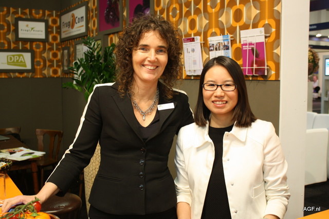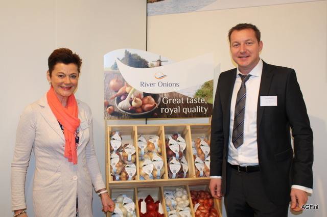 TOP Onions was ook weer present. Paula de Winter en Lammert Blikman, Paula verzorgt de verkoop van Daily Shallot, waarvoor TOP een joint venture heeft gesloten met Wiskerke Onions