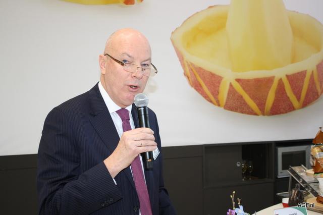 Piet van Vugt in gesprek met bezoekers. Van Vugt gaat nieuwbouwen in Ridderkerk en teelt daarnaast ook in Kenia en Spanje