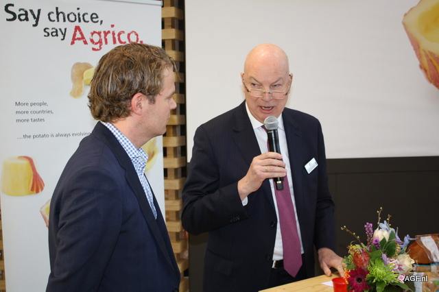 Bas Ruygrok en Hugo Jongejans van Jongejans Luchttechniek. Zij presenteerde de nieuwe uienafstaarter (onion-topper). Dit is een samenwerking van SN machinery uit de UK.