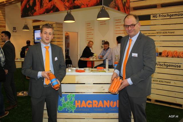 Arjan Freriks en Klaas Bouma van Hagranop. Naast wortelen was er ook wortelsap te zien