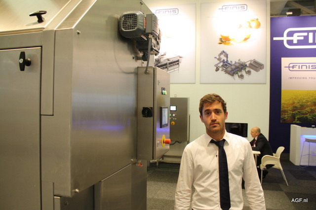 Bob Treuen van Marcelissen met deze messenschiller. Bob verwacht dat dit hun topper gaat zijn voor 2015. Deze schiller voornamelijk voor groente kan de houdbaarheid verlengen en het productverlies verminderen.