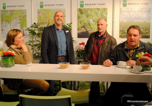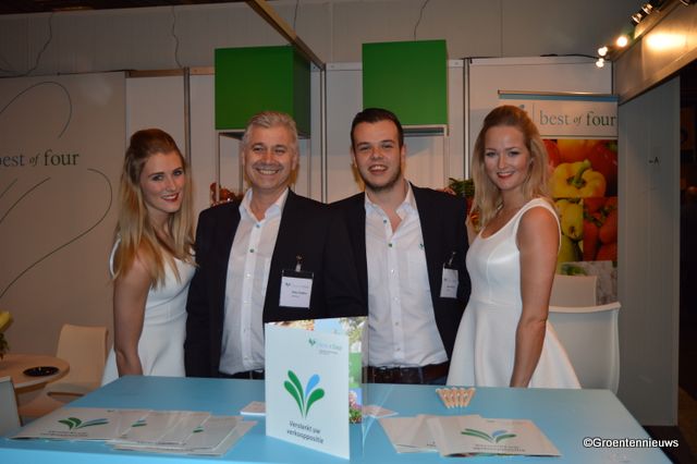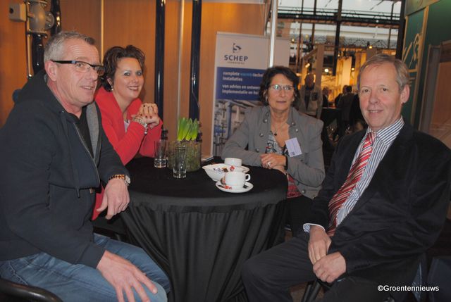 Als enige vrouw Ines van Marrewijk van Groen Agro Control en de mannen van links naar rechts van MeeGaa Substrates Peter Zethof,Frank Meeuwisse en Ivo Breugelmans