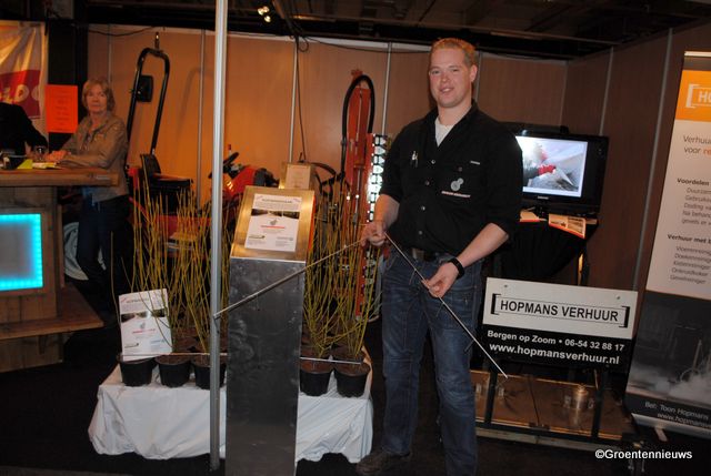 Niet helemaal de juiste verkopers bij Wayland Developments, waar Alex van Os (Hollandplant) even de stand bemant, maar wel het juiste enthousiasme.