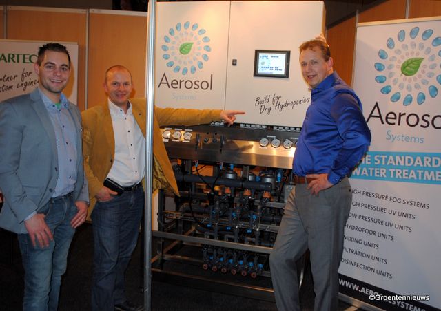 "Mike Zwinkels en Art van Rijn van Artechno en Aerosol en Chris Noordam, die natuurlijk wel het logo "Build for Dry Hydroponics" op de foto wil."