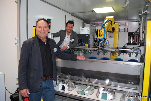 Peter Hendriks en Peter van der Knaap bij de nieuwe Smartscan 3D. De Smartscan telt met hoge betrouwbaarheid knoppen en bloemen