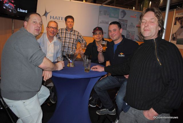 Een volle stand bij Lek/Habo, met Aad de Koning, Sjaak van der Meer, Martin van Meurs en Hennie Kosman