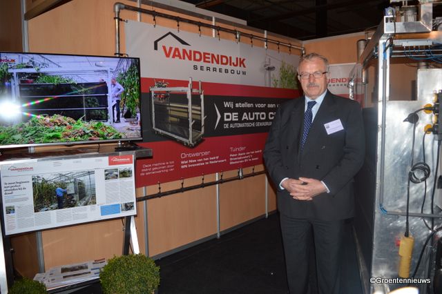 Wiel Niels van WN Innovaties. Hij is de uitvinder van de nieuwe gewasloopwagen. Vandendijk Serrebouw gaat deze machine vermarkten.