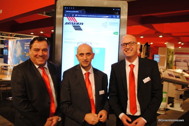Menno Krabben, André Tieleman en Kees van der Arend van Royal Brinkman ze introduceerde op de beurs de nieuwe webshop die geschikt is voor de smartphones en tablets