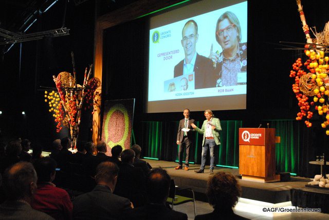 Dagvoorzitters Koen Joosten en Rob Baan - afkomstig uit de gezondheidszorg en de tuinbouw. De combinatie waar het vandaag om gaat.