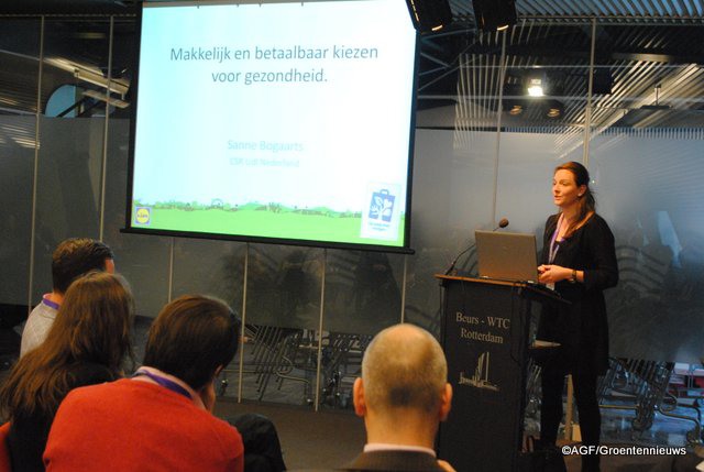Sanne Bogaarts van Lidl vertelde hoe Lidl bezig is met het verhogen van AGF-consumptie - of eigenlijk: met het verkopen van meer groente en gezondheid.