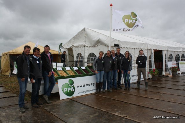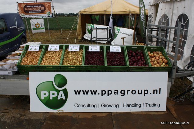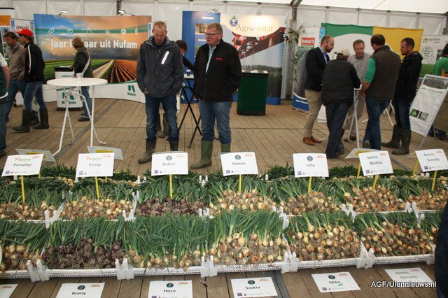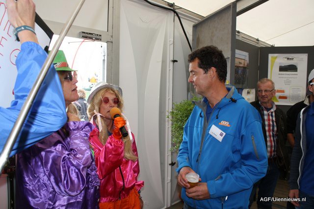 Corline Boekhout van Primeur/Uiennieuws te midden van Erwin Houmes en Kees van Nispen van ABAB