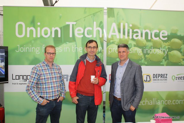 Onion Tech Alliance presenteerde zich voor het eerst aan het grote publiek. Ze trakteerden gelijk op uiensoep. Hier op de foto met Marco Maljaars, Johan Deprez en Wim de Rijder