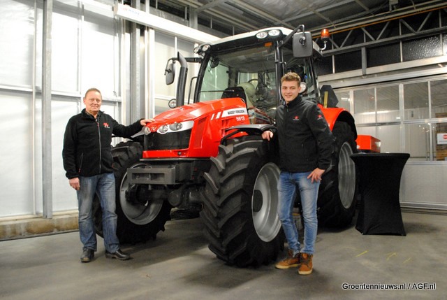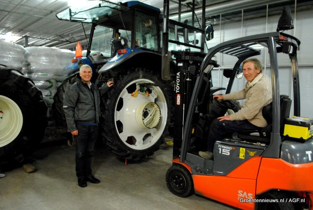 Peter van Heijst en Johan van der Kooij van firma Dick Klok met de nagelnieuwe trekker