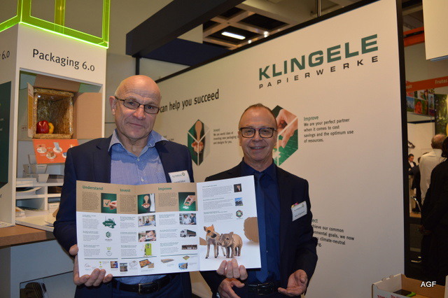 Klingele Papierwerke informeerde bezoekers over het Packaging 6.0 concept: Begrijpen · Uitvinden · Optimaliseren · Bewegen · Groeien · Beschermen Gerard Slebus en Heinz Bürgerhoff.