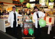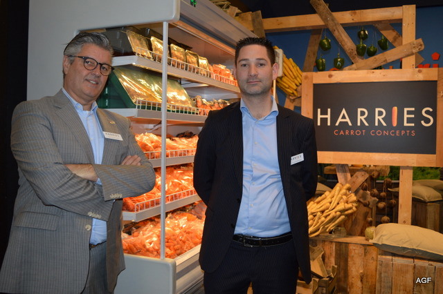 Harries Carrot Concept. Rene van der Linden en Gerbrand Veldhuizen. Zit bedrijf levert een breed scala aan snackwortelen. Nieuw zijn de wortelvezelballetjes bestaande uit 70% wortelvezel en 30% andere groenten en kruiden in diverse smaken. De vegetarische snack!