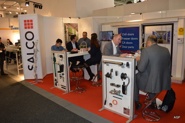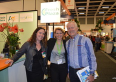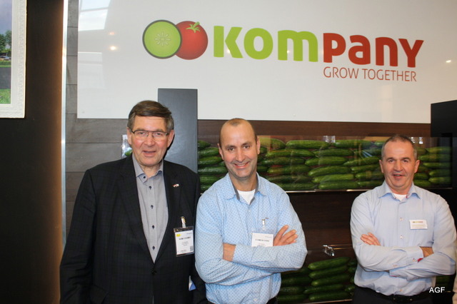 Interko is leverancier van rijpsystemen. Nieuw is de geïntegreerde led verlichting in de koelers. Anna Zegveld, Chris Maat en Neil Turbitt.