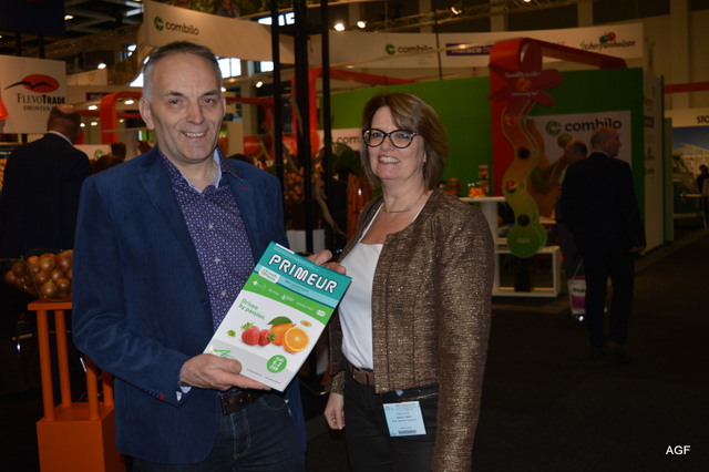 Janine Hofsommer en Jan Timmermans van C.G. Timmermans. Jan vertelt dat er te weinig hardfruit weg gaat.