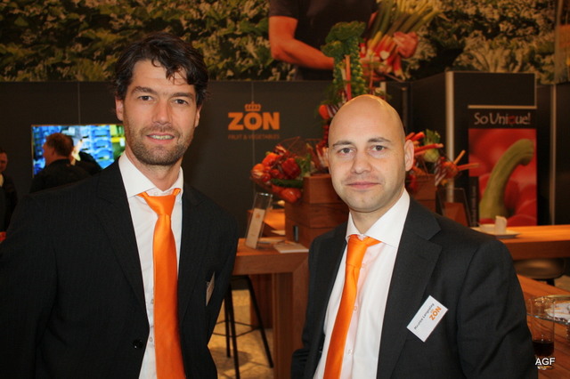 Rick van de Ven en Maurice Langeslag van ZON, voor het eerst met het nieuwe logo op de beurs
