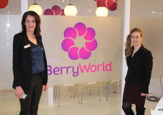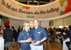 Floor Grubben en Shirley van der Linden poseren bij het nieuwe logo van BerryWorld