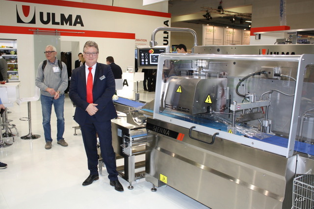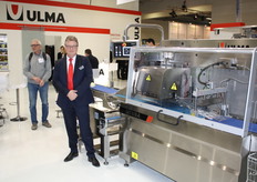 Alex Hofstee van Ulma voor de nieuwe Sienna hightec die een capaciteit heeft van 100 verpakkingen per minuut. De eerste komt in april in productie, maar er zijn er al enkele van verkocht