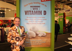Rob Banken in toepasselijk paddenstoelenpak. Het Carnaval- outfit volgde enkele uren later