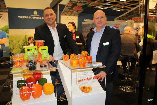 Wim van der Burgh en Frans van der Burg achter de Enjoya- paprika die derde werd in de verkiezing voor de Fruit Logistica Innovation Award