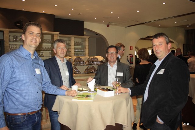 Een groepje uit het Haspengouwse. Marijke van der Stukken (Veiling Haspengouw), Luc Jacques (bestuurslid V. Haspengouw), Luc Bels (Voorzitter V. Haspengouw), Luc Vanoirbeek (Boerenbond) en Bert Vanweddingen (Teler/Bestuurslid V. Haspengouw).