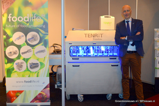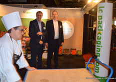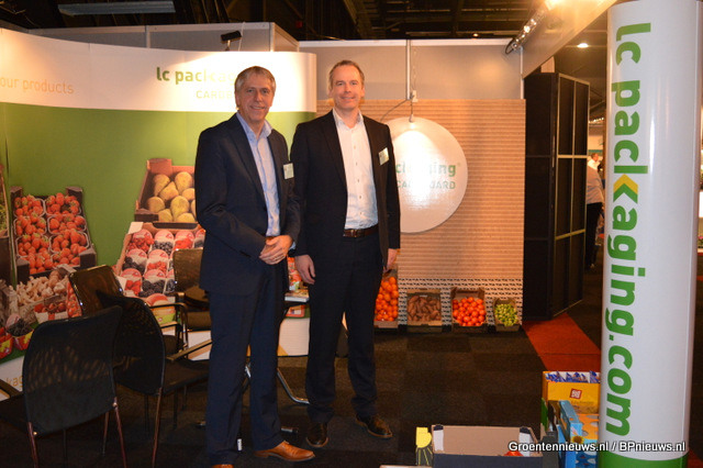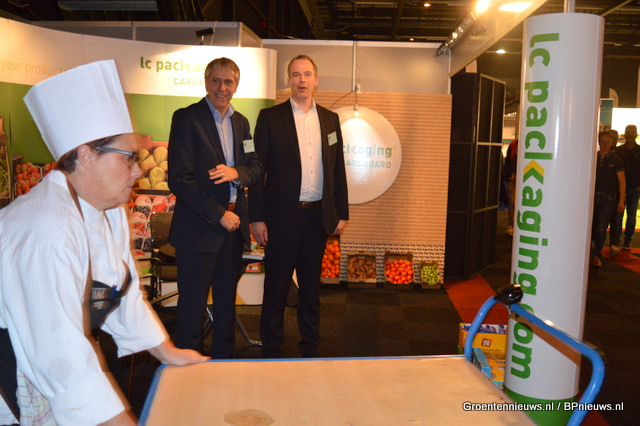 Peter van der Knaap en Fred Mattern van Martin Stolze presenteren de nieuwe ompakkingslijn voor groenten en zacht fruit