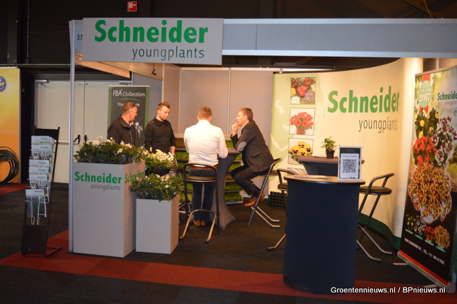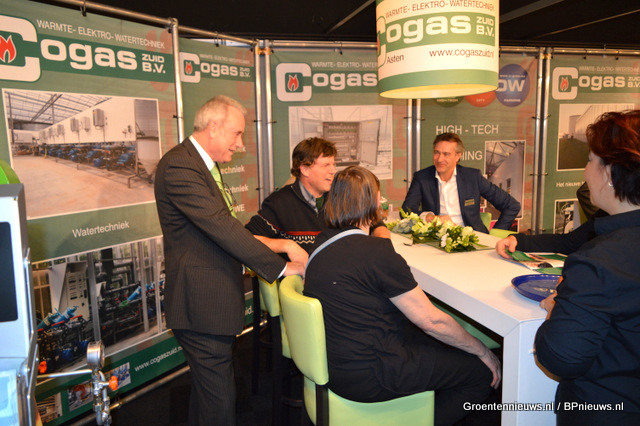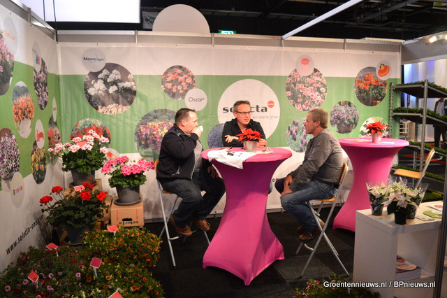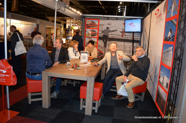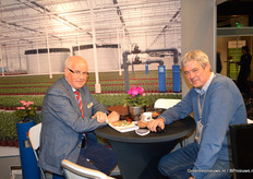 Is Youp hier ook? Nee, het is Lodewijk Wardenburg van PLJ Bom Group. Hij is in gesprek met Charles van Dijk van Gipmans Planten.