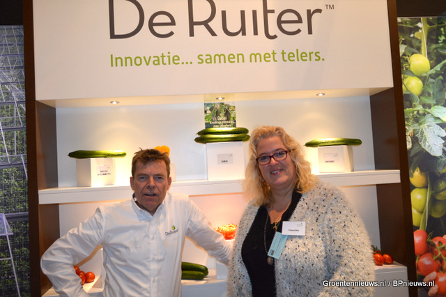 "Karel Welten en Franca Bok van De Ruiter. Karel:"Opvallend is de enorme vraag naar onze komkommerras Dubai."