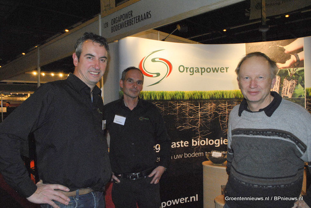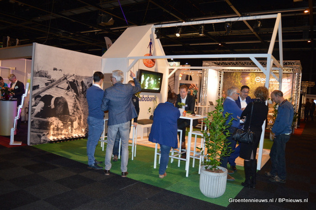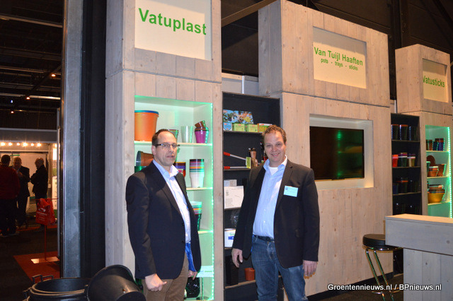 Jan Verbraeken en Arjen van den Berg van Delta Lloyd / Hortisecur. Leo van Staalduinen missen we op de foto. Hij liep net een rondje over de beursvloer.