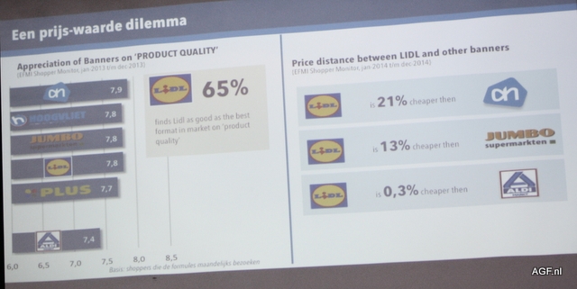 Niet alleen de prijs van discounters is een bedreiging voor de service-retailers. Er is ook een prijs-waarde dilemma. 65% ervaart Lidl zo goed als de beste speler in de lokale markt