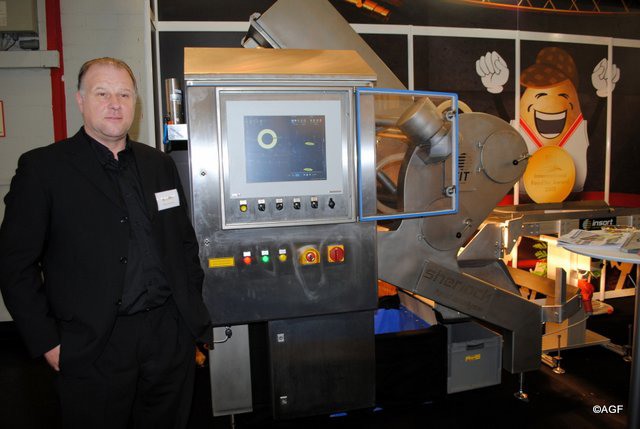 Kees Kelders van Insort. Trots op het winnen van de Food Innovation Award 2015 met de Sherlock Food Analyser. Deze machine voert metingen uit gebaseerd op de droge stoffen van een aardappel in dit geval. Hiermee krijg je een verbeterd overzicht van de kwaliteit van het product.