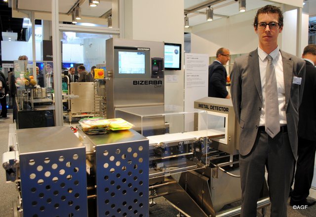 Tim Mahieu van Bizerba, met de CWF Bizerba check- en controleweger. Er is constante ontwikkeling gaande, waaronder bijvoorbeeld in de software. Met de laatst ontwikkelde software, Brain2 Capture, worden alle activiteiten van een organisatie weergegeven. Hierdoor kan de efficiency worden gemeten, maar ook defecten zijn gemakkelijk te vinden.