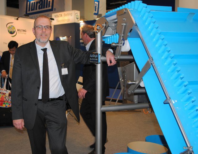 Alfons Sanchez van FTNON. Vanwege de overname van Laquey kunnen zij de lijnen verder automatiseren. Een voorbeeld is deze automatische robot die hele producten (bv. kool, paprika, sla) kan verplaatsen/positioneren.