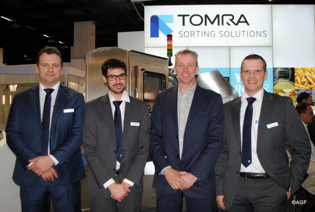 De mannen van Tomra. Tomra Sorting Food was aanwezig om met behulp van de Qvision analyser, Halo en Nimbus sorter aan verwerkers te laten zien hoe ze het rendement kunnen maximaliseren en tegelijkertijd efficiënt kunnen werken.