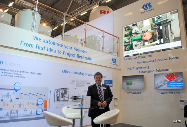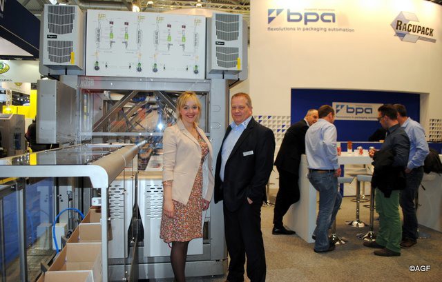 BPA, blueprint automation, voor het verpakken van onverpakte producten direct na de productie. Jos van Oekel met zijn Duitse collega.