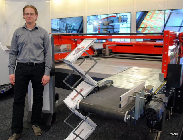Guy den Acker en Jean Marischal van Fischbein met de TOS 3000SL oplossing. Dit werd gepresenteerd tijdens de beurs als een 'easy to open' oplossing.