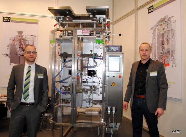 Sebastian Klein en Jan Strijbos van Inno-Tech (Prins verpakkingstechnike). Deze blokbodemmachine gaat met 100 slagen per minuut.
