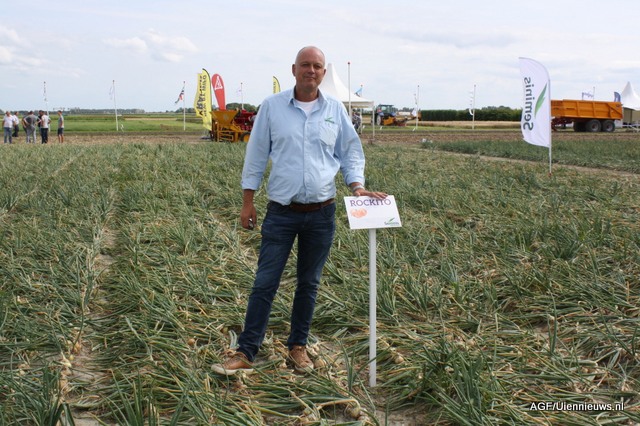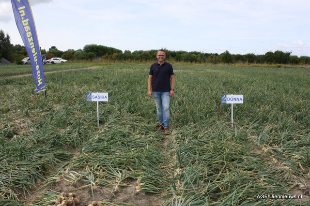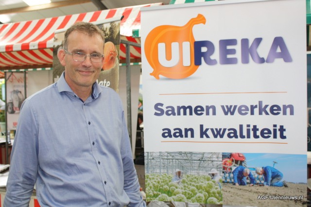 Projectmanager Chris de Visser van Wageningen University en Research van het onderzoeksprogramma Uireka. Hij kon tijdens het ontbijt het eerste product van het programma, een vernieuwde rassenlijst zaaiuien, overhandigen aan Gijsbrecht Gunter die deze lijst namens de sector in ontvangst nam.