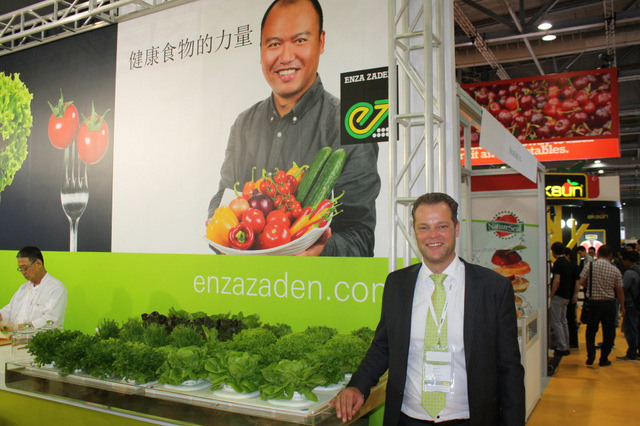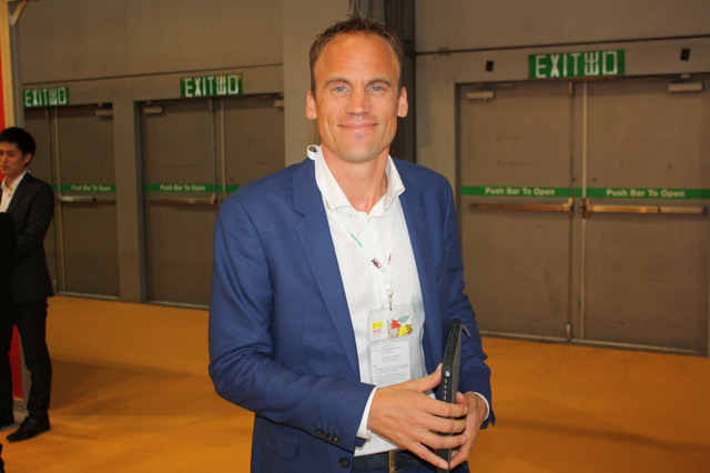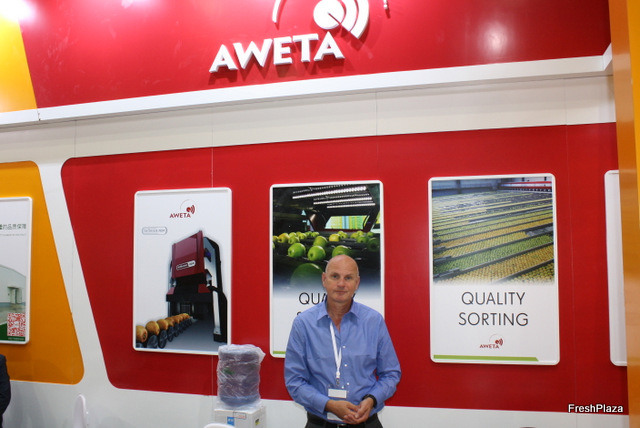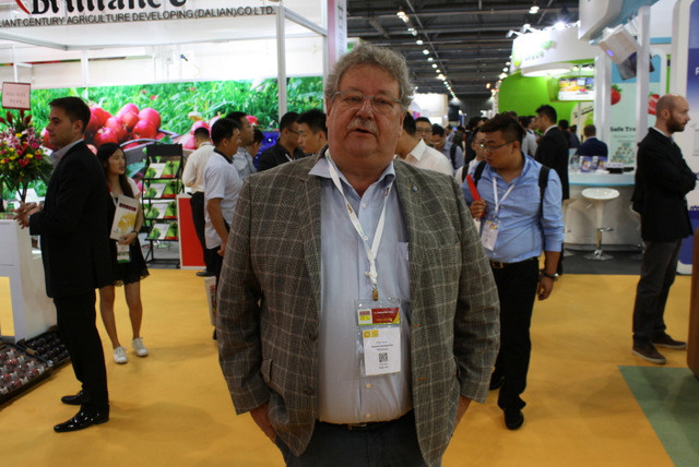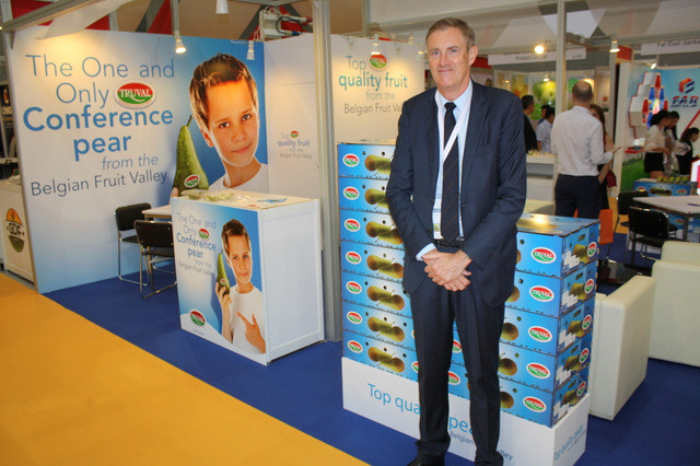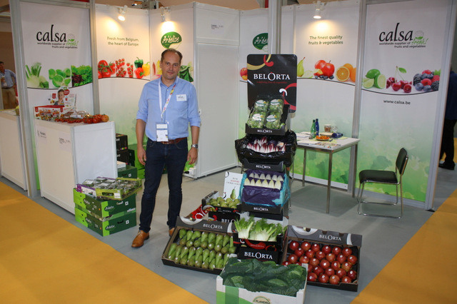Piet Verbrugghe van Calsa, dat alweer voor de derde keer op rij deelnam aan de beurs. Vorig jaar exporteerde Calsa de eerste peren van Bel'Orta naar China. Naar vollegrondsgroenten is vooral vraag vanuit Japan, Korea en Taiwan. India heeft vooral interesse in Belgische appelen, maar die zijn dit jaar minder beschikbaar